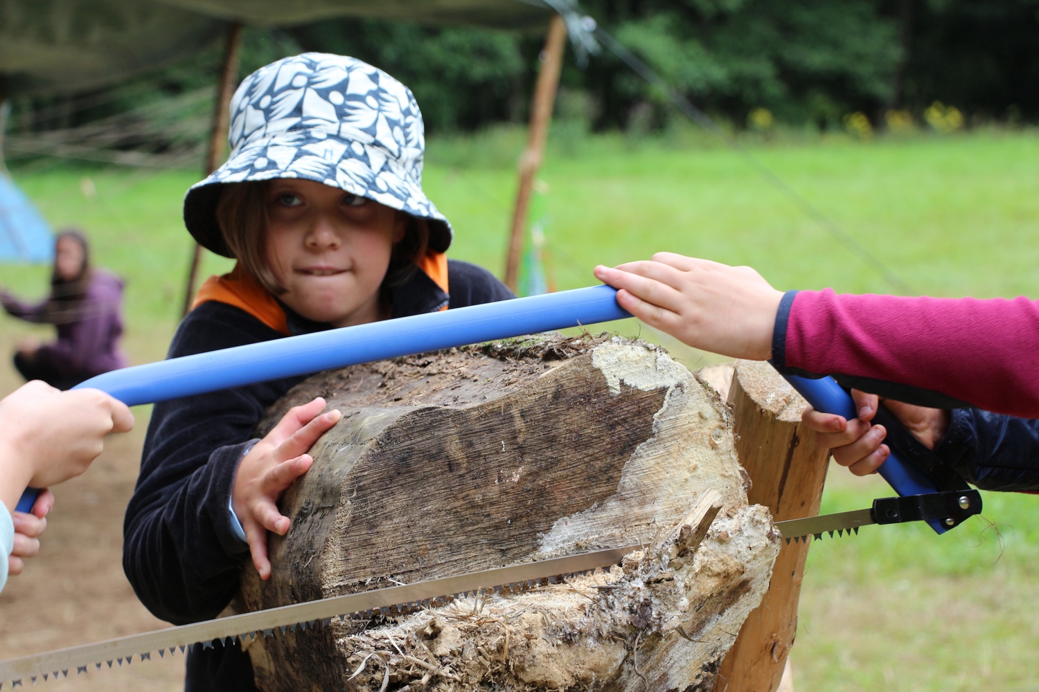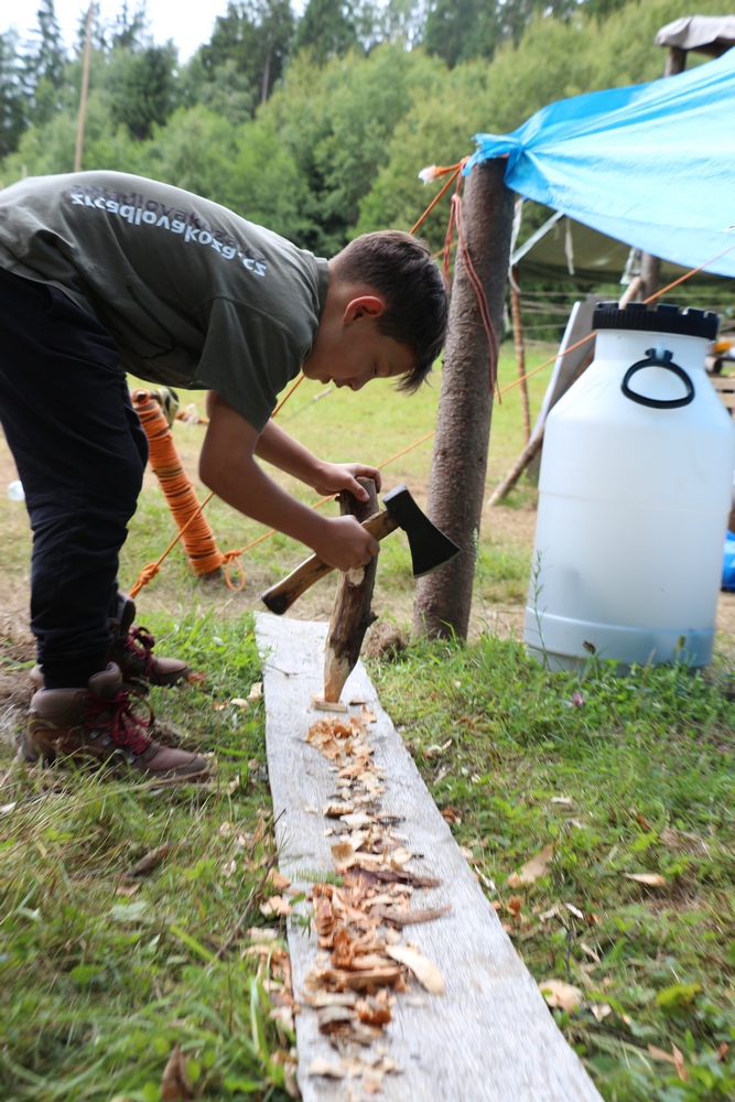 První dva srpnové týdny jsme opět strávili tam, kde je čas měřen úplně jinak než v běžném životě. V tábořišti Na samotách u obce Úterý jsme si společně postavili domov na čtrnáct dní. Z tee-pee, hamak, stanů, vojenského hangáru a dalších primitivních udělátek. Po konci tábora jsme ho zase pečlivě zbourali. Tábořiště jsme ale neopustili jen tak – na oplátku za možnost tam být jsme vytvořili nové lavičky k ohništi, lávku přes brod i schody v kopci.