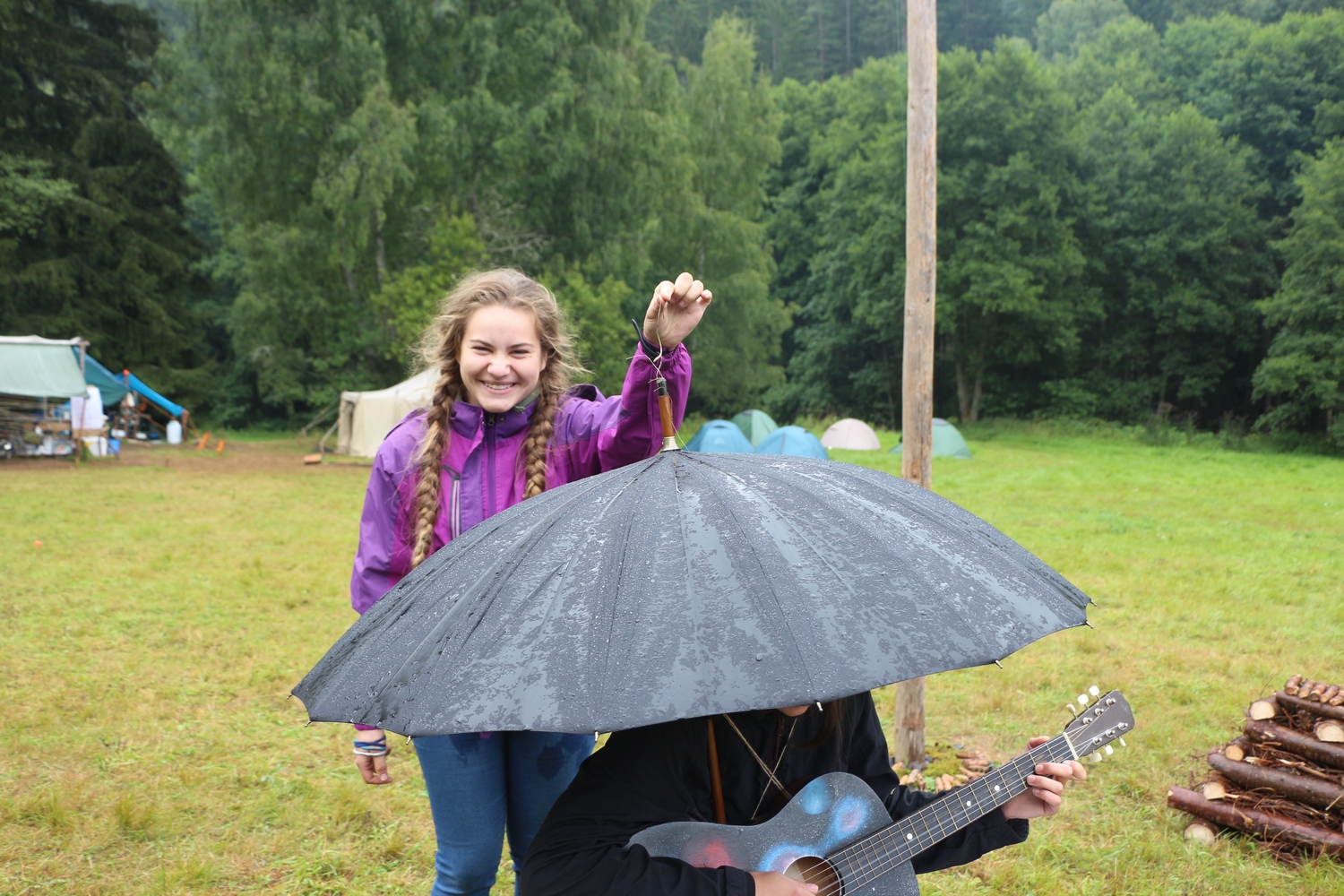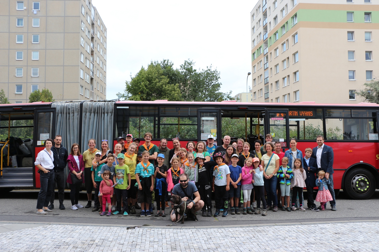 Na tábor nás dovezl kloubový autobus. Jeli jsme společně se všemi krabicemi, barely a kotlíky. Už jen ta cesta byla malé dobrodružství – představte si, jak se dlouhý autobus snaží proplést úzkými cestami, zastaví na otočce, kde vyneseme všechny věci, začne pršet a my se musíme dostat se vším možným harampádím na tábořiště 2 kilometry vzdáleného po turistické cestě se dvěma brody a značným blátem. Paráda!