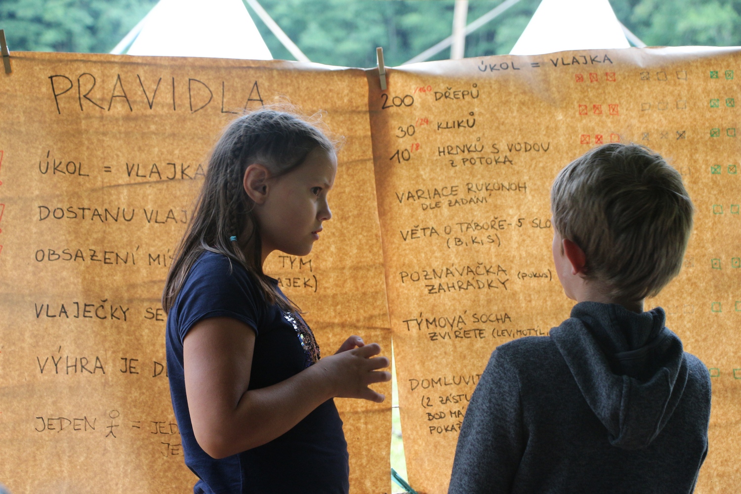 Nechyběly hry, při kterých jsme se honili po loukách i potocích – od pašeráků přes závody ve stylu spartan race až po živou verzi Osadníků z Katanu. Vedle toho jsme se stali i malými vědci: zkoumali jsme přírodu kolem, tvořili hypotézy a pak své objevy prezentovali před ostatními.