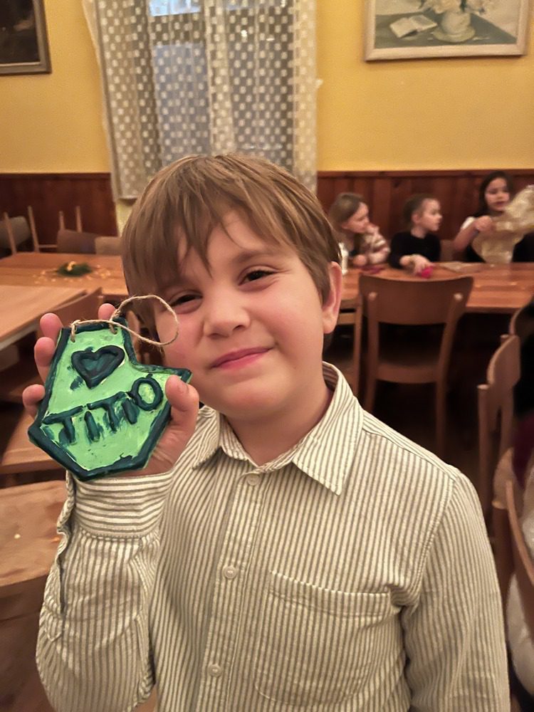 Odpoledne jsme se pustili do výzdoby místnosti. Kromě nasbíraných přírodnin přišly na řadu i pomeranče. Vykrajování vzorů z jejich kůry provonělo celou bývalou školní jídelnu a ukázalo, že i obyčejné ovoce se může stát sváteční dekorací. Každý přiložil ruku k dílu a výsledek stál za to.